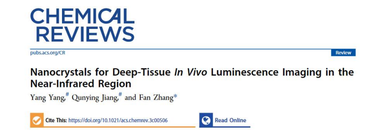 Recently, the research team of Prof. Zhang Fan with the College of Energy Materials and Chemistry of IMU(CEMC)has published an article in the international top journal for review articles in chemistry-Chemical Reviews. The article is titled “Nanocrystals for Deep-Tissue In Vivo Luminescence Imaging in the Near-Infrared Region”(URL of the article: https://pubs.acs.org/doi/10.1021/acs.chemrev.3c00506). Chemical Reviews was launched by American Chemical Society in 1924 and is recognized as one of the most academically influential journals in the international chemistry field. In 2023, its effect factor is 62.1. Research Fellow Yang Yang with CEMC who has joined IMU under Steed Program of the university and Associate Research Fellow Jiang Qungying with CEMC who has joined IMU under Talent Program of the university are co-first authors of the article and Prof. Zhang Fan is the corresponding author of the article. IMU is the institution the first authors are with.