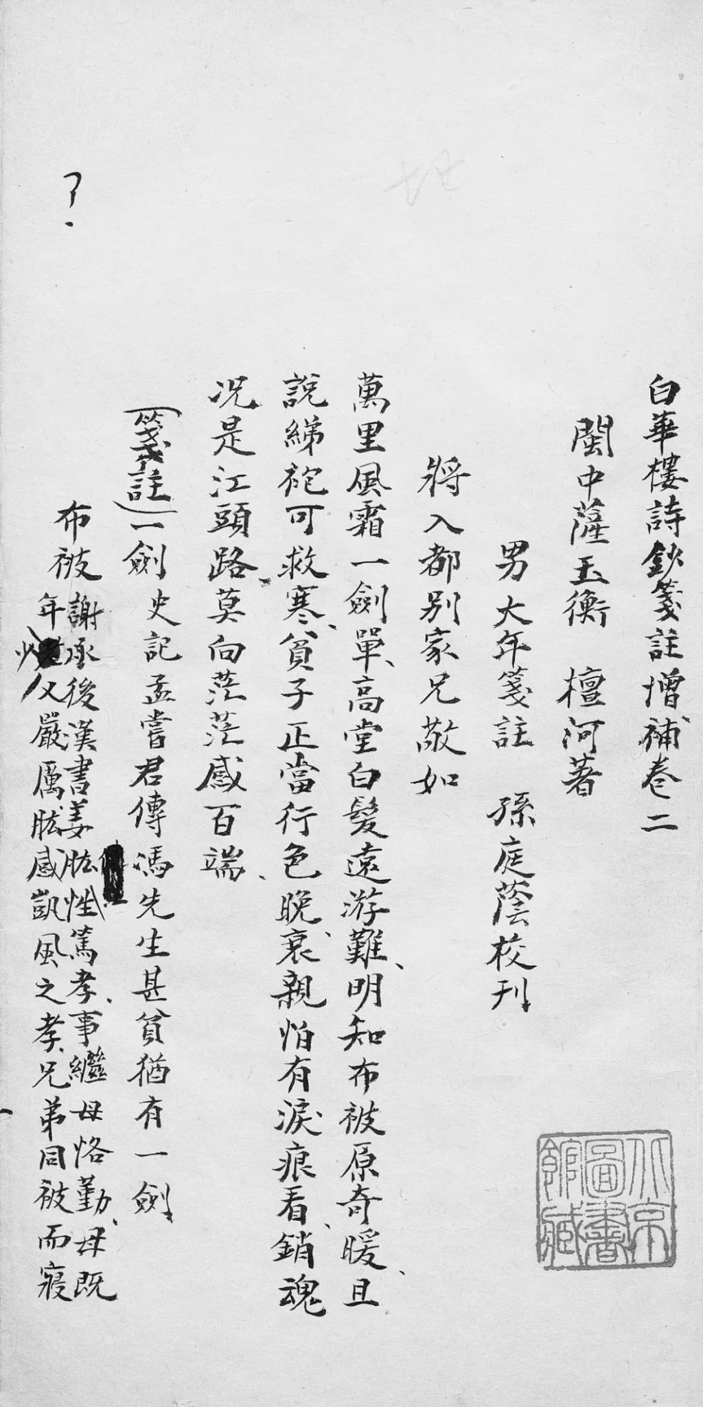 三、萨玉衡《白华楼诗钞笺注增补》八卷,稿本;