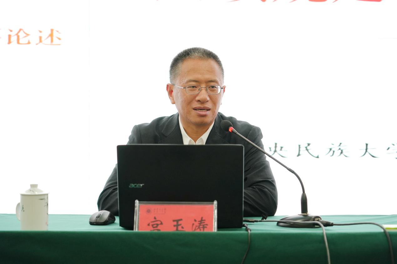 5月21日上午,我校在学术会议中心8号会议室召开党委理论学习中心组2025年第四次集体学习(扩大)会,中央民族大学马克思主义学院副院长、中共党史党建研究所所长,教授,博士生导师,(中宣部)习近平文化思想研究中心中央民族大学协同研究基地研究员宫玉涛受邀做辅导讲座。校党委副书记乔彪主持会议,全校副处级以上领导干部参加会议。